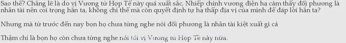 Nói thật, lúc đầu khi nàng vừa mới nhìn thấy Vương tử Hợp Tề thì nàng còn nghĩ rằng hắn ta chỉ là một nam thần đẹp trai thôi! Không ngờ rằng hắn ta lại tàn nhẫn như thế, tác phong ra tay cũng quyết đoán như vậy