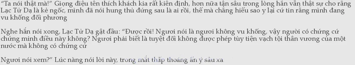 Tên thích khách kia nghe đến đây liền hiểu ý tứ vòng vo trong câu nói của nàng Sau đó, hắn liếc mắt nhìn Minh Dận Thanh rồi im lặng không nói gì nữa