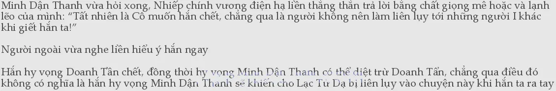 Đạm Đài Dục Đường, Đáp Đáp và Kỳ Vĩ đều lộ ra vẻ mặt muốn cười nhưng không thể cười, bởi vì giọng nói và âm sắc mà Lạc Tử Dạ đang bắt chước thật sự quá giống với Minh Dận Thanh, nhưng mà nội dung lại y như tấu hài.