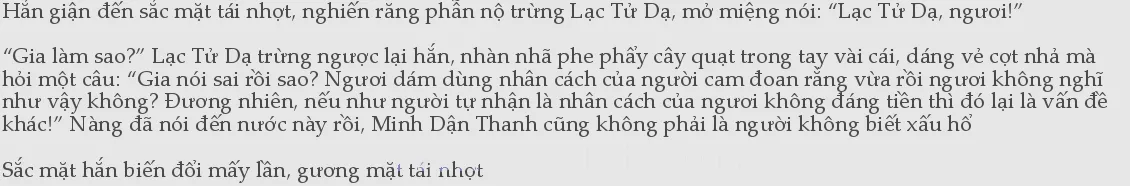 Sau khi liếc qua vạt áo cháy đen trên người Lạc Tử Dạ lần nữa, hắn lại lia ánh mắt về phía Minh Dận Thanh