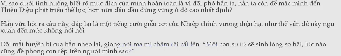 Ở trong mắt hẳn, mình chỉ là một con rệp? Thế nhưng, hắn suy nghĩ lại thật cẩn thận, hình như hiện tại sức ảnh hưởng của mình đối với Phượng Vô Trù thật sự cũng chỉ có một chút như vậy.