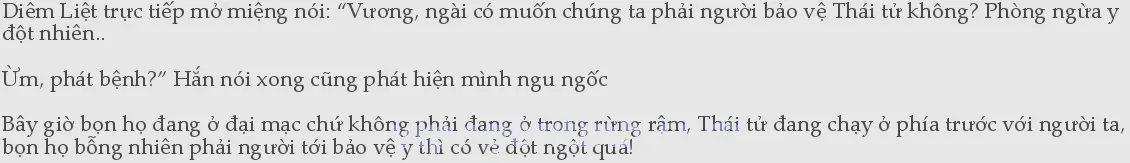 Hơn nữa, chuyện săn bắn thường không ở một chỗ cố định, thỉnh thoảng còn giương cung bắn tên nữa, bọn họ đi theo sau cũng không dễ bảo vệ! Mân Việt yên lặng một lúc rồi mới nói: “Vương, thuộc họ cho rằng việc này sẽ không đáng ngại đâu, dù sao khi nãy ngài cũng thấy rồi đấy, Thái tử chỉ tự xưng mình là cục cưng thôi chứ hành vi vẫn còn bình thường lắm! Thế nên y sẽ không xảy ra chuyện gì đâu, ngài có thể yên tâm!” Chứng si ngốc như trẻ em ấy không dễ để trị khỏi, hơn nữa bệnh tình vô cùng thất thường, nhưng mà nó cũng không phải là trạng thái bình thường của người bệnh nên sẽ không tái phát thường xuyên