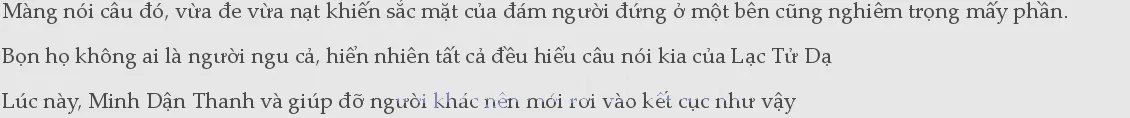 Tóm lại là hắn tin rằng, sau khi kết cục hiện tại của Minh Dận Thanh bị truyền ra, chỉ sợ những người đàn ông thẳng thắn chính trực của đại mạc này cũng không dám xen vào việc của1người khác nữa!