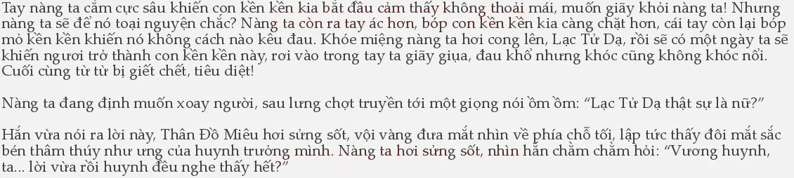 3��Không sai! Nghe thấy hết.” Thân Đồ Diệm gật đầu, nhìn lướt qua hai người phía xa xa kia, tâm trạng bỗng nhiên kỳ quái. Hắn từng đánh nhau với Lạc Tử Dạ nhưng thật sự không thể tưởng tượng một người đàn ông càn rỡ, thậm chí còn hơi thô bỉ kia lại là nữ? Điều này với hắn mà nói thật sự là không thể tin nổi. Hắn trả lời như vậy, Thân Đồ Miêu nhìn hắn mấy lần, đáp lời: “Nếu huynh đã nghe thấy, vậy thần muội cũng không nói thêm gì, thần muội xin được cáo lui trước!”