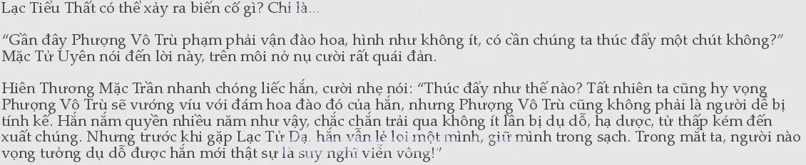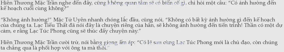 Năm đó Hiên Thương Não, Mặc Tử Uyên, còn có... ba người bọn họ đều bái cùng một sư tôn. Chỉ có điều, người tiếp nhận đảo Thiên Lãng chỉ có thể là người trong hoàng thất Hiên Thương, nếu sư tôn có lén cho Mặc Tử Uyên thuốc gì thì thật ra cũng không kỳ lạ lắm.