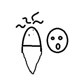 Trước tiên cô vẽ một hình bầu dục đầu trên tròn, đầu dưới nhọn, sau đó vẽ một đường chia đôi hình bầu dục, sau lại vẽ thêm vài đường trên vòng tròn lớn.