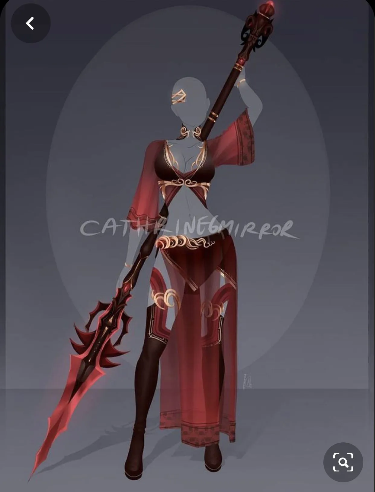 Tiếp theo đó là Red, khắp người cô lửa xuất hiện và bao trùm lấy cô. Quay trở lại người con gái cai quản phía nam, thần thú Chu Tước. Trang phục của cô.