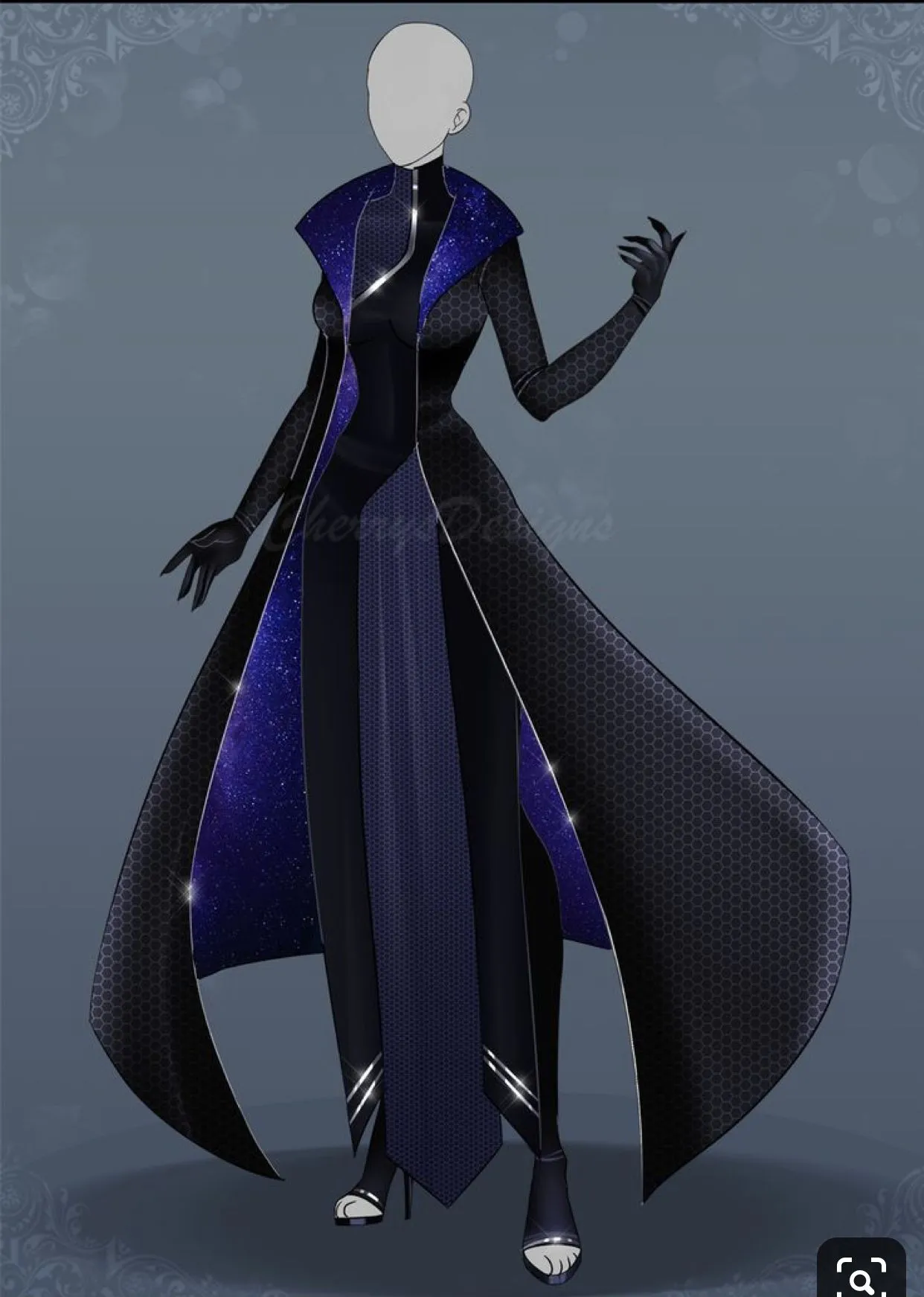 Kèm theo trên tay là chiếc đèn quen thuộc của mình, mái tóc tím uốn lượn và đôi mắt nâu sâu thẳm. Phía Dosu khẽ cười, rồi lơ lửng trở về nguyên hình của mình. Trang phục của anh.