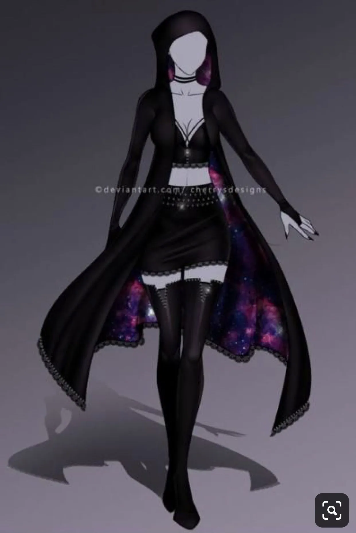 Yogen-Sha đứng im, bộ đồ trên người thay đổi kèm theo màu tóc và mắt. Trang phục của cô.