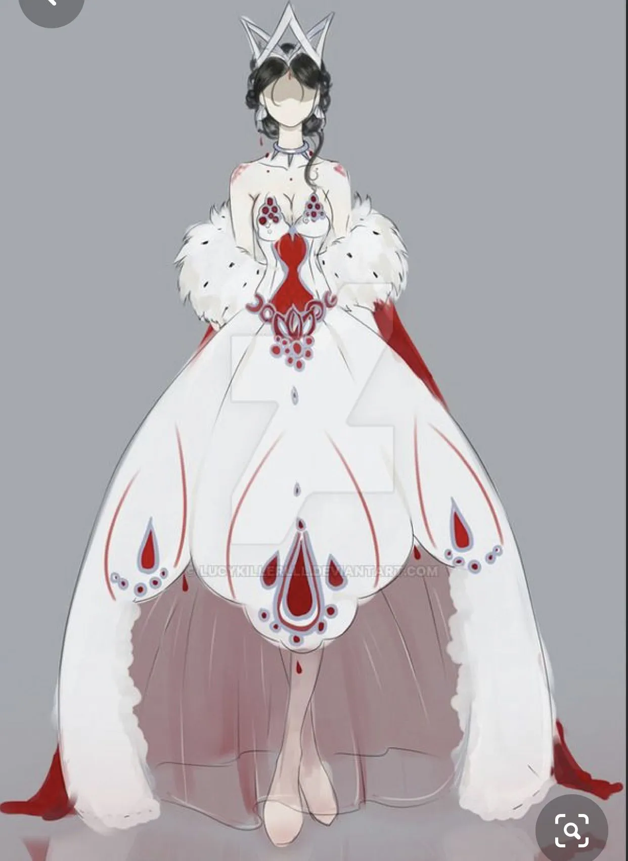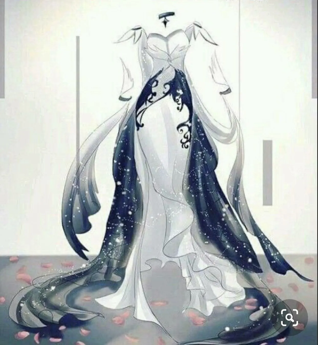 Tà váy trải dài kéo lê trên đất, gương mặt lạnh nhạt, thờ ơ. Tất cả đều dàng hàng sang 2 bên nhường đường cho Rin đi. Rin đứng dưới nơi đối diện Tenshi ngồi trên kia.