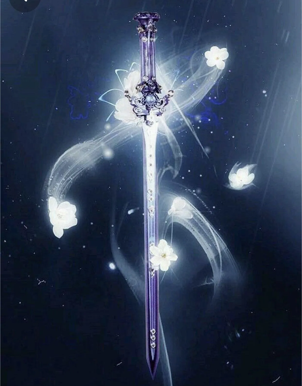 Rồi phất tay nơi giữa phòng xuất hiện 1 thanh kiếm tím cùng với chiếc lắc đeo tay cùng màu.