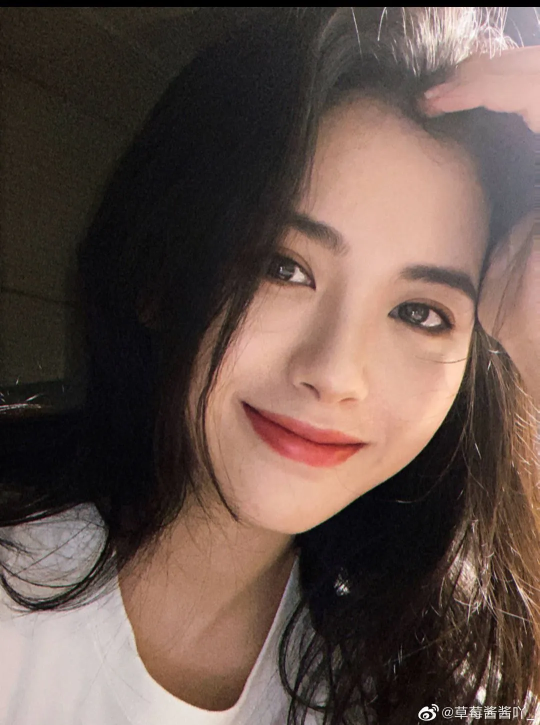 Trong bức ảnh, Phó Ngàn Tư môi đỏ hé mở, nhìn camera không chút biểu cảm, lười biếng nhưng lại rất xinh đẹp.