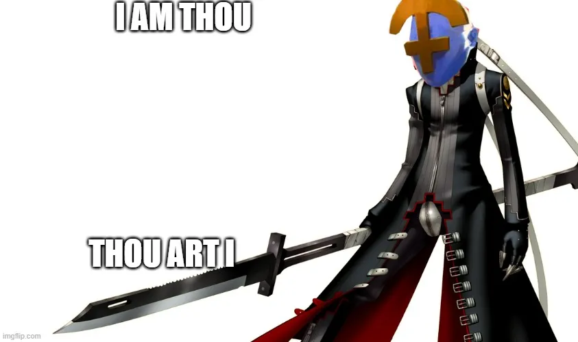 “I am thou, thou art I (ta là ngươi, ngươi là ta)~.” Sabata tự tin nói.