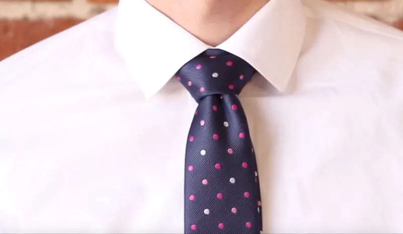 Nút thắt Windsor* tao nhã được buộc một cách thuần thục trên cần cổ trắng ngần.