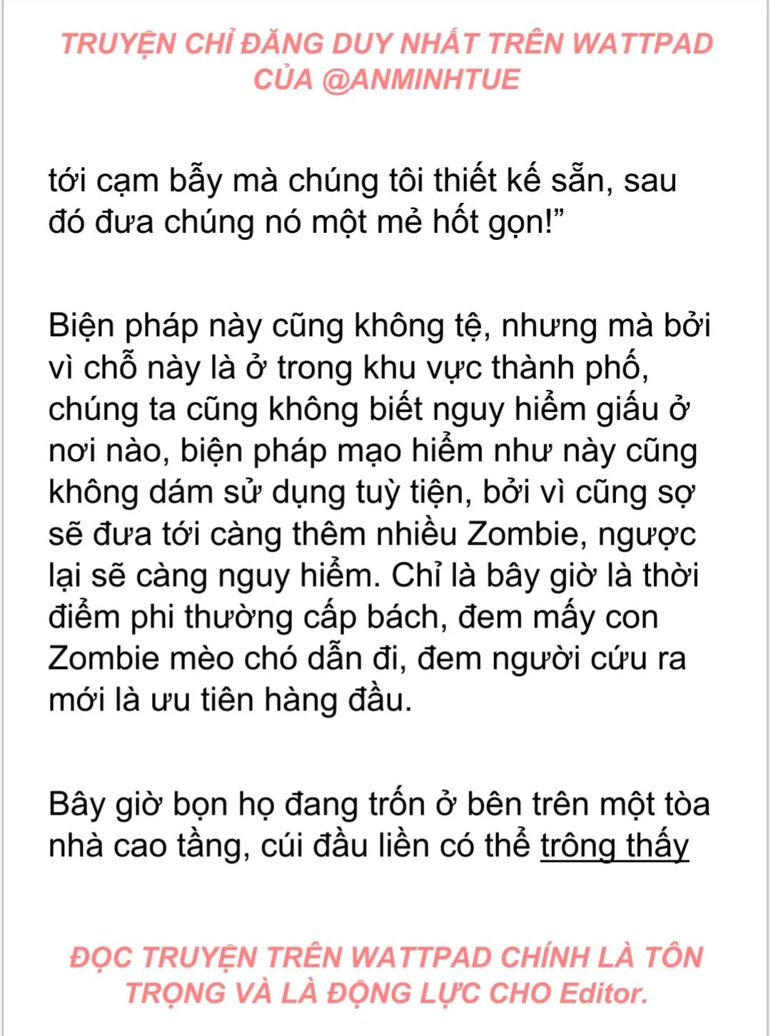 Tình huống như vậy chỉ sợ liền ngay cả hai anh em Thẩm Đông Minh cùng Thẩm Đông Tuyết Liên đều là không nghĩ tới, thần sắc càng là kích động dị thường, tình huống như vậy làm sao lại không tốt? Truyện chỉ đăng duy nhất trên Wattpad của @AnMinhTue, Đương nhiên là tốt nhất không còn gì tốt hơn, kỳ thật lúc tận thế tiến đến, đáng sợ nhất không phải là Zombie, không phải là động vật Zombie, lại càng không phải là do động vật biến dị cùng hoàn cảnh khí hậu biến đổi lớn, đáng sợ nhất, là lòng người, là không còn đạo đức.