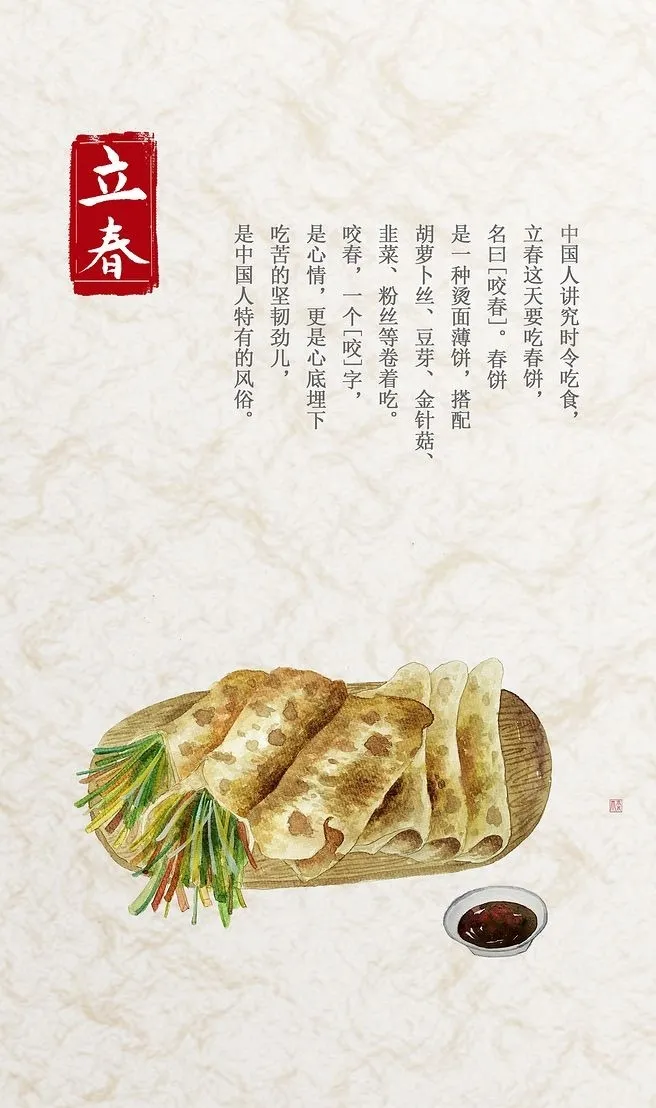 Ở thời này, tiết lập xuân có phong tục ăn đĩa xuân. Cái được gọi là đĩa xuân chẳng qua là dùng bánh bột mì cuốn rau để ăn.