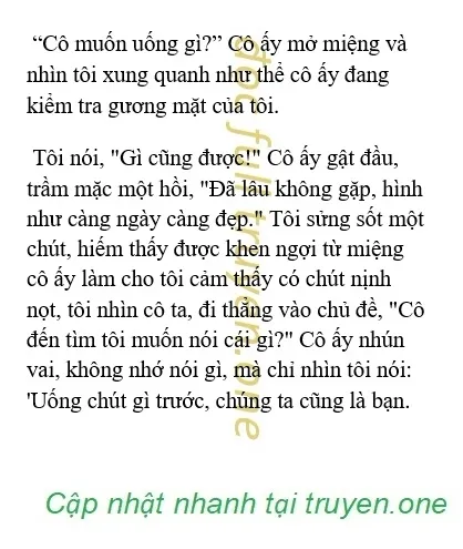 Tôi ngồi trước mặt cô ấy, cô ấy nhìn tôi, không biết có phải do thức khuya lâu không, gương mặt cô ấy hơi bóng nhờn và thăng trầm cuộc sống, lớp trang điểm dày trông hơi bẩn khiến cô ấy khó chịu.