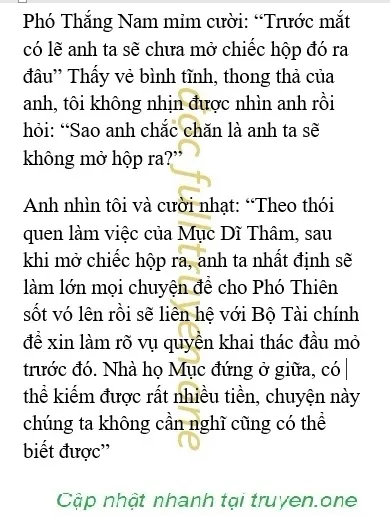 Anh nhìn tôi, khóe miệng hơi nhếch lên: “Thế nên anh đã chuẩn bị trước rồi, lấy một chiếc hộp khác thế vào chỗ-của chiếc hộp kia” Tôi ngạc nhiên nói: “Mục Dĩ Thâm mà biết thì nhất định sẽ giết chết chúng ta. Mặc dù đồ vật trong hộp không phải là thứ gì chí mạng nhưng nhờ nó mà nhà họ Mục có thể sẽ kiếm được một khoản tiền lớn. Nếu nhà họ Mục có được số tiền này thì bọn chúng sẽ có cơ hội trở mình và tiếp tục đấu đá với Phó Thiên”