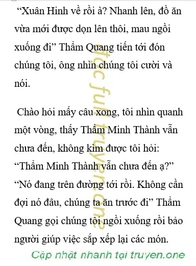 Nhưng chúng tôi vừa ngồi xuống không bao lâu thì bên ngoài đã truyền đến tiếng động cơ ô tô, Thẩm Quang khit mũi nói: “Thằng quỷ này đến đúng lúc thật đấy. Sớm không đến, muộn không đến mà đến đúng vào lúc ăn cơm” Thẩm Quang vừa dứt lời thì giọng của Thẩm Minh Thành cũng truyền từ bên ngoài vào: “Yo, đến sớm nhỉ. Tôi còn tưởng vợ chồng em mò mẫm tới bảy tám giờ tối mới tới nữa, không ngờ sớm vậy mà đã có mặt rồi” Tôi ngước mắt lên nhìn rồi không khỏi cau mày nhìn sang người đàn ông bên cạnh.
