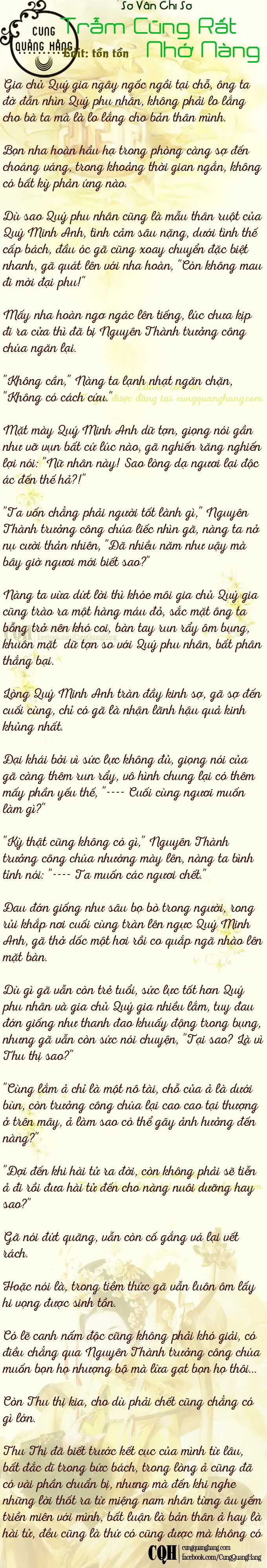 Nàng ta chẳng thèm nhìn người nhà Quý gia, chẳng qua là chuyển ánh mắt trống rỗng đặt vào một nơi không biết tên rồi tự nhủ: "----- thật tốt, những năm này, sống người không ra người, quỷ không ra quỷ."