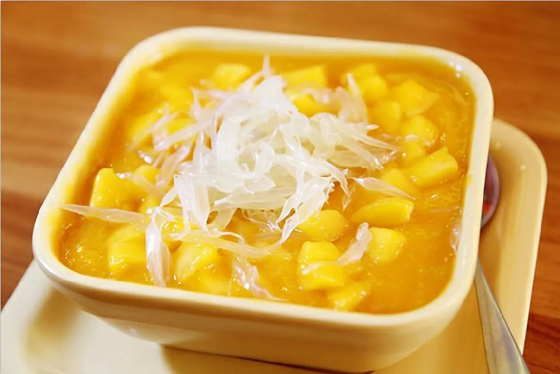 (1) Chè xoài bưởi bột báng: 杨枝甘露 tên Tàu của nó là “Dương chi cam lộ”, món này có thể ăn ở các quán chè Tàu bên mình, cái tên đúng là mĩ miều thôi rồi nhưng nghe không hiểu gì cả nên mình chọn cách gọi nghe phát hiểu liền thuần Việt, cái tên này mình lấy từ