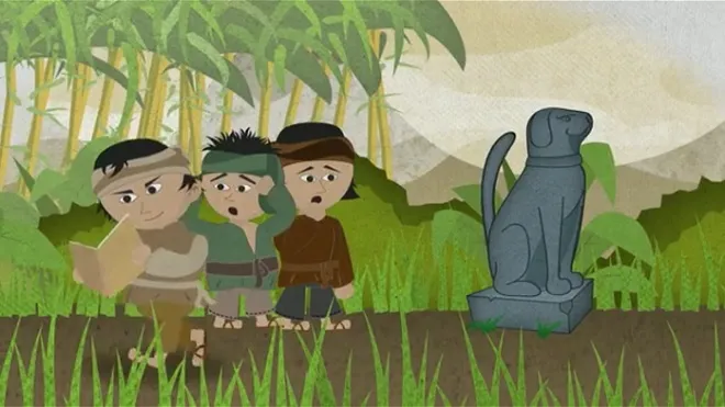 Ngày xưa có một học trò, ngày nào đến nhà thầy đồ để học, cũng đi qua một nơi có con chó bằng đá. Bao nhiêu học trò khác đi qua đó thì không sao, chỉ có người học trò này đi qua, thì con chó như nhảy lên mừng rỡ.