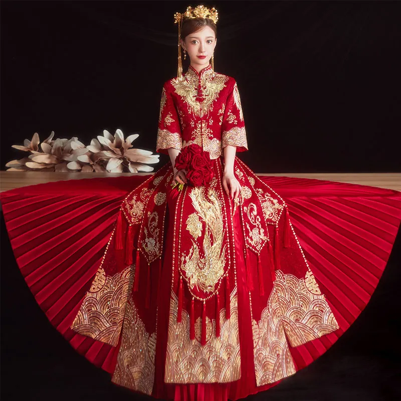 Cố Nhiễm mặc một chiếc váy thêu long phượng màu vàng kim trên nền đỏ, phối với trang sức lộng lẫy trên đầu, nhìn máy ảnh dưới cằm làm động tác tay “ngầu lòi” 🤘: “Trông mình cũng không tệ lắm ha.”